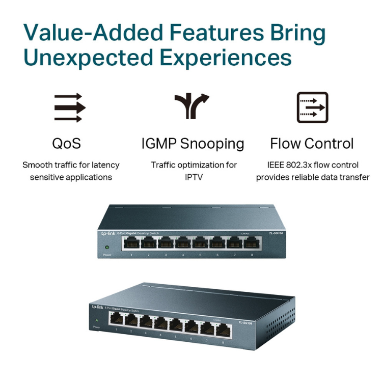 10/100/1000Mbps จำนวน 8 พอร์ต รองรับ Auto-Negotiation